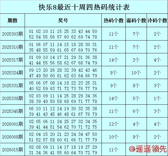 福彩快乐8第2026015期(上周四)开奖回顾:02 08 09 11 14 17 18 19 27 29 31 34 36 41 55 60 64 70 72 79,其中奖号遗漏总值为47,冷温热码比为0:9:11。